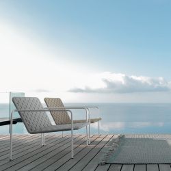 The Jackie armchair by Talenti is perfect for creating a relaxing outdoor environment where you can enjoy the charm of the spring or summer air, with the light of the sunset or with the night leather as a background. Jackie is made of stainless steel, the back and seat are covered in rope.