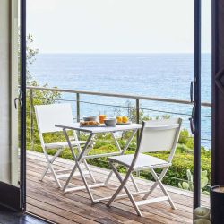 The structure is made of varnished aluminium whereas seat and backrest are made of textilene, a plastic material easy to wash, water resistent and UV-resistant.
