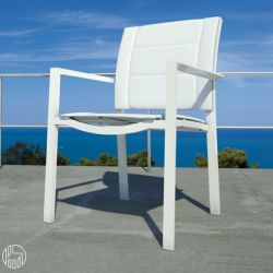 Touch/S has got aluminium structure and seat/backrest in textilene, a transpiring synthetic fabric extremely resistant to atmospheric agents.