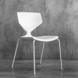 The malleability of this material allows for the creation of a particular sculptural effect: at the meeting point between the seat and the backrest, the shell twists and narrows.