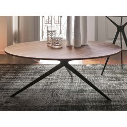 This model features a painted metal structure available in black or stone bronze; the top is matt lacquered black or covered in canaletto walnut , natural oak or dark oak .