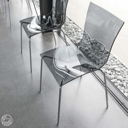 Technopolymer seat is available in glossy white or transparent smoked-grey colours.