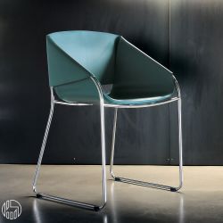 Sled frame is made of metal and it is available with chromed finish; cozy seat with armrest is covered with natural hide, available in many different colours.