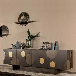 Modern sideboard with iridescent round inserts, the optical decoration characterizes Matisse with a playful but elegant mix of colours.
