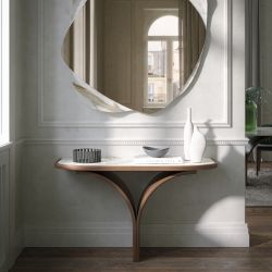 The Arco console table is defined by a light curved structure covered in wood that enhances its soft, contemporary lines.