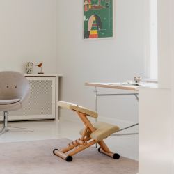 Thanks to its wooden knobs, the seat can be adjusted to four different positions. The kneeling posture found on Multi encourages a naturally upright position at any of these angles.