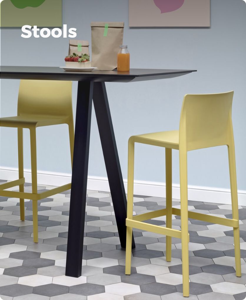 According to the tables you've selected for your room, you can match seats with different height. Typically for chairs, the seat height is between 43 and 47 cm. If, on the other hand, in your restaurant you want to create an informal area, where customers can get something quickly, you can opt for high tables and stools. For the latter it is necessary between the height of the seat and the table top there is a space of 25-35 cm. Here are some examples to choose the correct combinations.