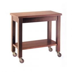 Table trolley for restaurants. Structure and shelves are made of solid beech wood, painted in walnut.