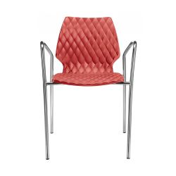 The design armchair, stackable up to 4 pieces, is suitable also for garden and veranda decor. Only the chromed or satin finish armchair is not suitable for outdoor use.