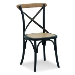 Wooden chair with unusual crossed backrest. Its vintage and alternative look makes it perfect for kitchen but also for bars and restaurants.