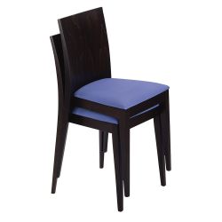 This stackable chair is made of natural, stained or lacquered wood with seat padded and covered in a wide range of coverings: