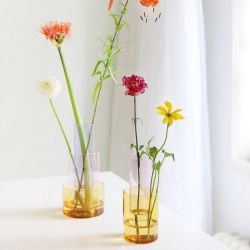 Elegantes y coloridos, los jarrones de la colección Amphi están hechos de vidrio borosilicato. Diseñado para crear hermosas composiciones gracias a múltiples niveles de altura.