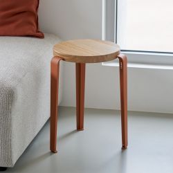 La colección de taburetes Lou tiene un diseño sencillo e informal, adecuado para diferentes contextos de decoración. Realizados con patas de metal y asiento redondo de madera o polipropileno reciclado, estos taburetes se caracterizan por su sabor nórdico y el particular sistema de fijación de las patas al asiento.