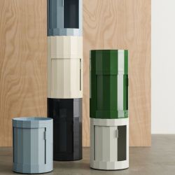 Facet Cabinet es un mueble de almacenaje dotado de un original sistema que permite apilar verticalmente otros contenedores de la misma familia y fijarlos con un sencillo sistema de enclavamiento.