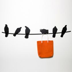 Birds on Wire es artístico y funcional, las siluetas de los pájaros se convierten en prácticos ganchos para colgar chaquetas y bolsos.