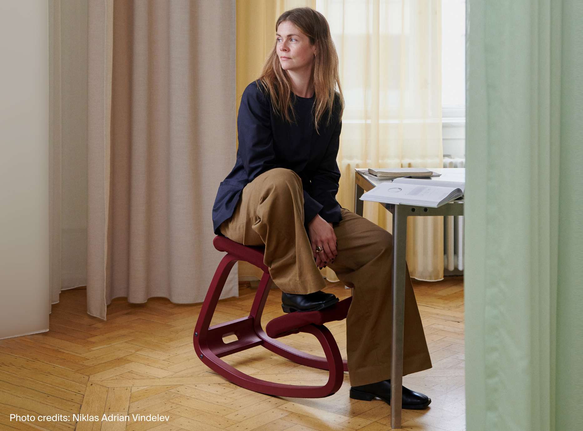 En este contexto, la silla Variable Balans se ha convertido en una constante en sus días. Utilizada especialmente durante largas sesiones de estudio, la silla favorece una postura más abierta y natural, ayudando al cuerpo a mantenerse activo incluso durante periodos prolongados de sedentarismo. Amalie ha notado una reducción de la tensión en la espalda y los hombros, un pequeño cambio que ha tenido un impacto significativo en su bienestar diario.