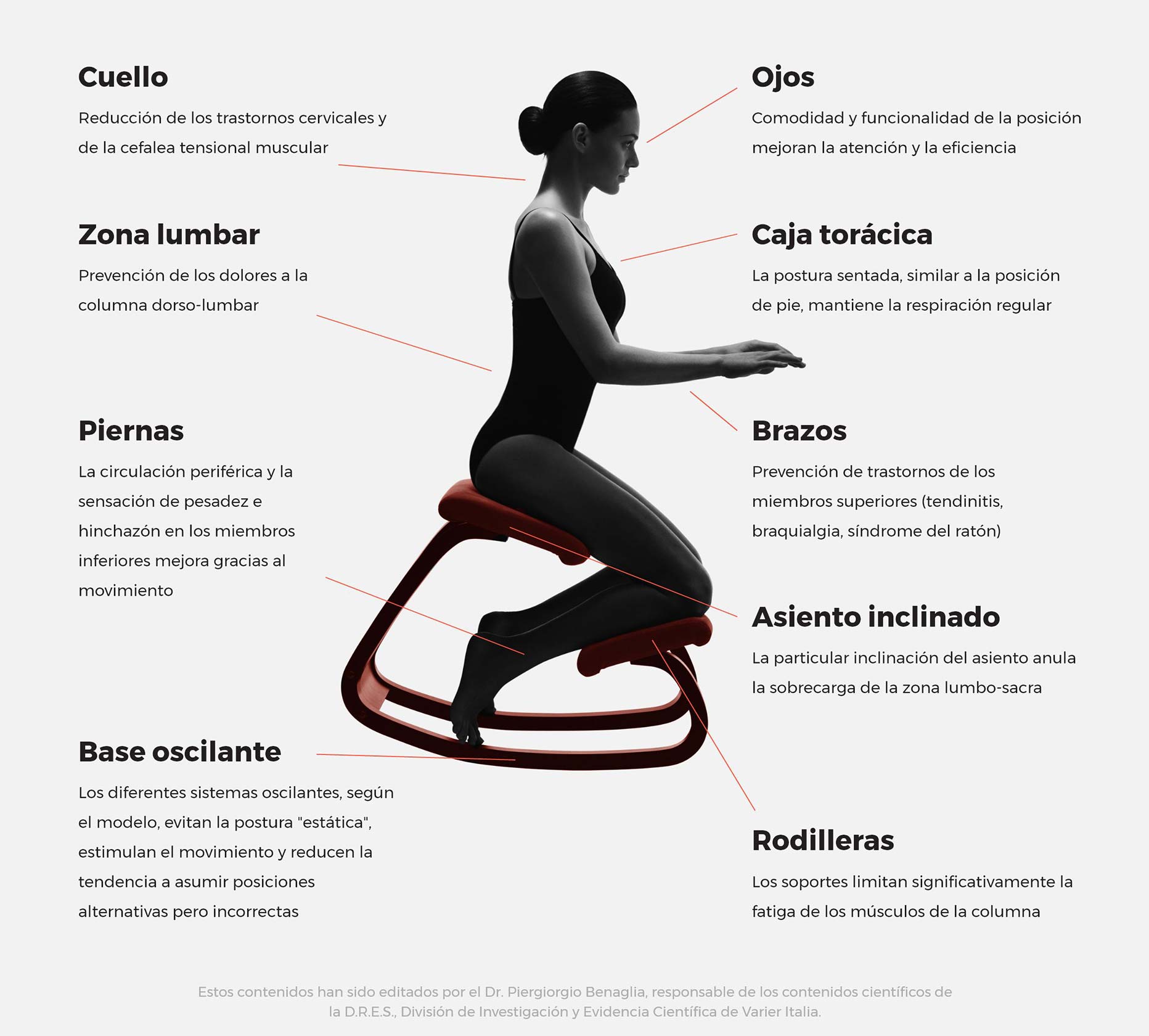 La postura de la espalda es el problema que más sienten las personas que permanecen sentadas muchas horas al día. El dolor de cuello o lumbar es bastante común, en gran parte debido a una posición incorrecta: te mueves poco, te desplomas sobre el escritorio o de lado, tiras el cuello hacia adelante.