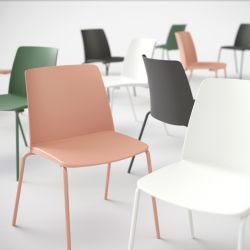 Flexa tiene una estructura de metal pintado del mismo color que el asiento de polipropileno.