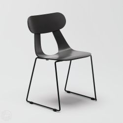 La estructura patín de metal pintado soporta la carcasa de madera contrachapada de fresno propuesta en acabado natural o lacada en varios colores. El asiento de madera se une al respaldo del respaldo gracias a una junta de encaje.