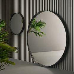 El marco del espejo está realizado en metal pintado con acabado mate, disponible en varios colores.