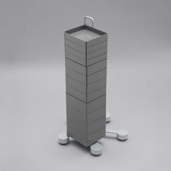Spinny, una cómoda inesperadamente versátil, cuenta con una serie de cajones de ABS moldeados por inyección que giran hasta 180°. Los cajones son de 12, (L x P) 29,7 x 25,5 cm, de diferentes alturas (de arriba a abajo: 6, 9 y 12 cm), y están disponibles en diferentes colores con acabado brillante.