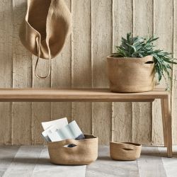 La colección de cestas de Bolia está fabricada en yute natural y es apta para diversos usos. Se pueden utilizar como revistero, portaobjetos o como macetero para plantas. Hay tres modelos disponibles, de dimensiones (L x P x H):