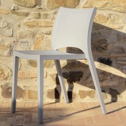 Esta silla, gracias a la estructura de material plástico, es ligera y fácil de manejar; se adapta perfectamente a los ambientes modernos y es ideal para usar en la cocina pero también en el jardín o la terraza.