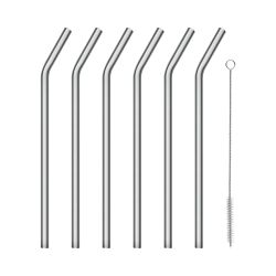 El set consta de 6 pajitas y un cepillo de limpieza fabricado en nailon y acero inoxidable.