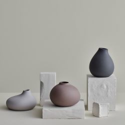 El conjunto Nona se compone de tres pequeños jarrones de diferentes formas y tamaños, respectivamente de 9 cm, 7 cm y 6,5 cm de altura.