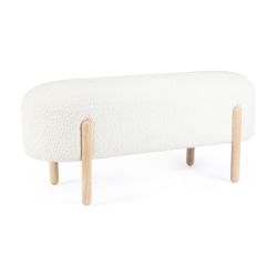 Fabricado con estructura de contrachapado, acolchado y tapizado en poliéster con efecto bouclé. Con patas de madera de caucho, este banco es perfecto para cualquier estancia de la casa, desde la entrada hasta el dormitorio.