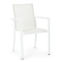 Tiene una estructura de aluminio pintado , mientras que el asiento y el respaldo son de textileno . Los cómodos reposabrazos aumentan la comodidad. Cuando no se usa, se puede apilar fácilmente.