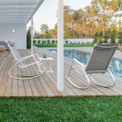 Ideal para dar un toque de estilo al salón o al dormitorio, el sillón mecedora está fabricado en acero pintado en polvo con tratamiento exterior.