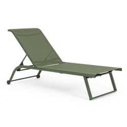La estructura de la tumbona es de aluminio pintado , disponible en varios colores con revestimiento de textileno a juego.