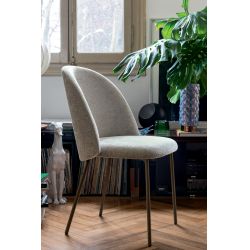 Realizada con estructura de metal pintado con acabado mate y asiento tapizado en tela, medidas Tuka (L x P x A): 55 x 59 x 86 cm, altura asiento 47 cm.