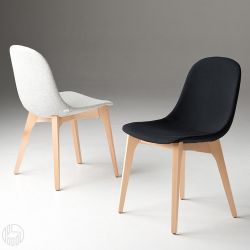 Silla de design realizada con estructura en madera de haya barnizada o lacada. El armazón único está recubierto de poliuretano espumado en frío y tapizado en tejidos de varios colores.