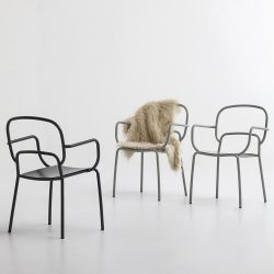 Moyo es una silla moderna con reposabrazos, con estructura de acero pintado, disponible en varios colores.