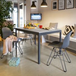 Snap es una mesa de diseño sencillo y lineal, ideal para amueblar cualquier tipo de ambiente gracias a su gran versatilidad y oferta en acabados y medidas.