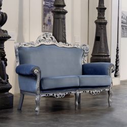Como su nombre indica, este sofá está inspirado en las formas barrocas de los muebles antiguos que adornaban los palacios y villas aristocráticas. Para caracterizarlo, los bordes de encaje y trabajados de manera escultórica se unieron a los apoyabrazos con volutas.