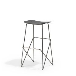 Ideal para amueblar la zona del mostrador de la cocina o habitaciones con un estilo contemporáneo, este taburete tiene una estructura de varilla curvada de acero y un asiento de madera contrachapada lacada. El reposapiés está protegido por una varilla de acero inoxidable (excepto la versión de acero cromado).