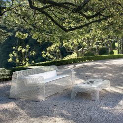 Este sofá para jardín es totalmente realizado en acero 100% Made in Italy y es disponible en blanco.