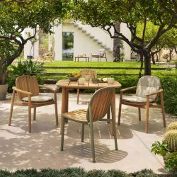 La colección Twins es una línea de mobiliario de exterior con una personalidad inconfundible. Sillas, mesas y muebles tapizados tienen como elemento común la madera de teca natural, un material con un encanto exótico muy adecuado tanto para amueblar el jardín o la terraza de casa, como para su uso en espacios públicos: bares y restaurantes, hoteles, alojamientos. instalaciones.