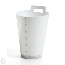 Dotada de un cómodo asa, la moderna papelera está fabricada en polipropileno blanco perla, un material plástico muy resistente.