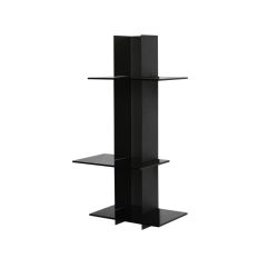 Elib es una librería de pared en metal pintado de negro con estantes en metacrilato PMMA en los colores transparente, blanco, negro y blanco satinado.