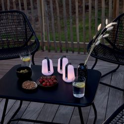 La colección de lámparas recargables Balad de Fermob tiene un diseño sencillo y elegante, que se caracteriza por el mango de aluminio pintado o bambú y el difusor de polietileno. Compuesta por diferentes modelos de lámparas de mesa y de pie, esta línea de lámparas es sumamente funcional: gracias a la alimentación por batería, se pueden colocar en cualquier lugar, tanto en interiores como en exteriores.