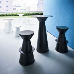 El tecnopolímero permite crear un taburete hueco, haciéndolo muy ligero y fácil de manejar. Es un material altamente resistente a la intemperie, ideal para exteriores y jardines.