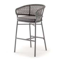 La estructura es de aluminio pintado, mientras que el respaldo y los reposabrazos están envueltos en una red de cuerda acrílica. El asiento está equipado con un cojín de tejido Olefin (100% polipropileno), desenfundable para facilitar la limpieza.