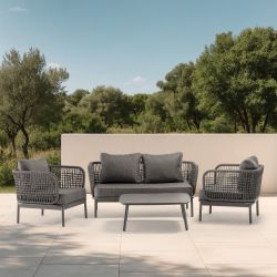- Estructura de aluminio gris antracita , cuerda y cojín a juego, combinado con mesa de centro antracita.