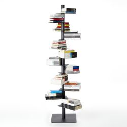 Nardo es una librería de diseño caracterizada por superficies de apoyo que giran 360 grados alrededor de la columna de soporte.