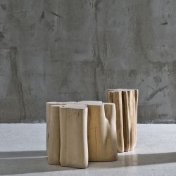 Brick es una sección de tronco de carpe natural descortezado: cada mesa de centro es una pieza única . Por lo tanto, la forma puede variar mucho: puede estar cerca del óvalo redondo o tener un perímetro más ondulado, creando un movimiento de pétalos.