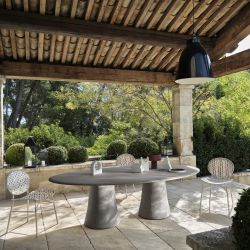 Mesa con tapa ovalada y doble base central, modelo Noa.